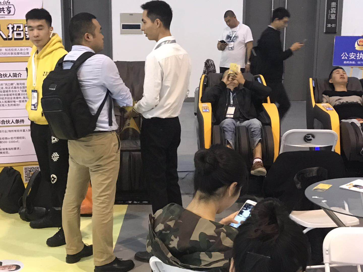 头等舱互联的工作人员现场值守,详细地为每一个来体验了解共享按摩椅的客户进行解疑答惑!很多客户在体验完后,都表现出了极大的兴趣!
